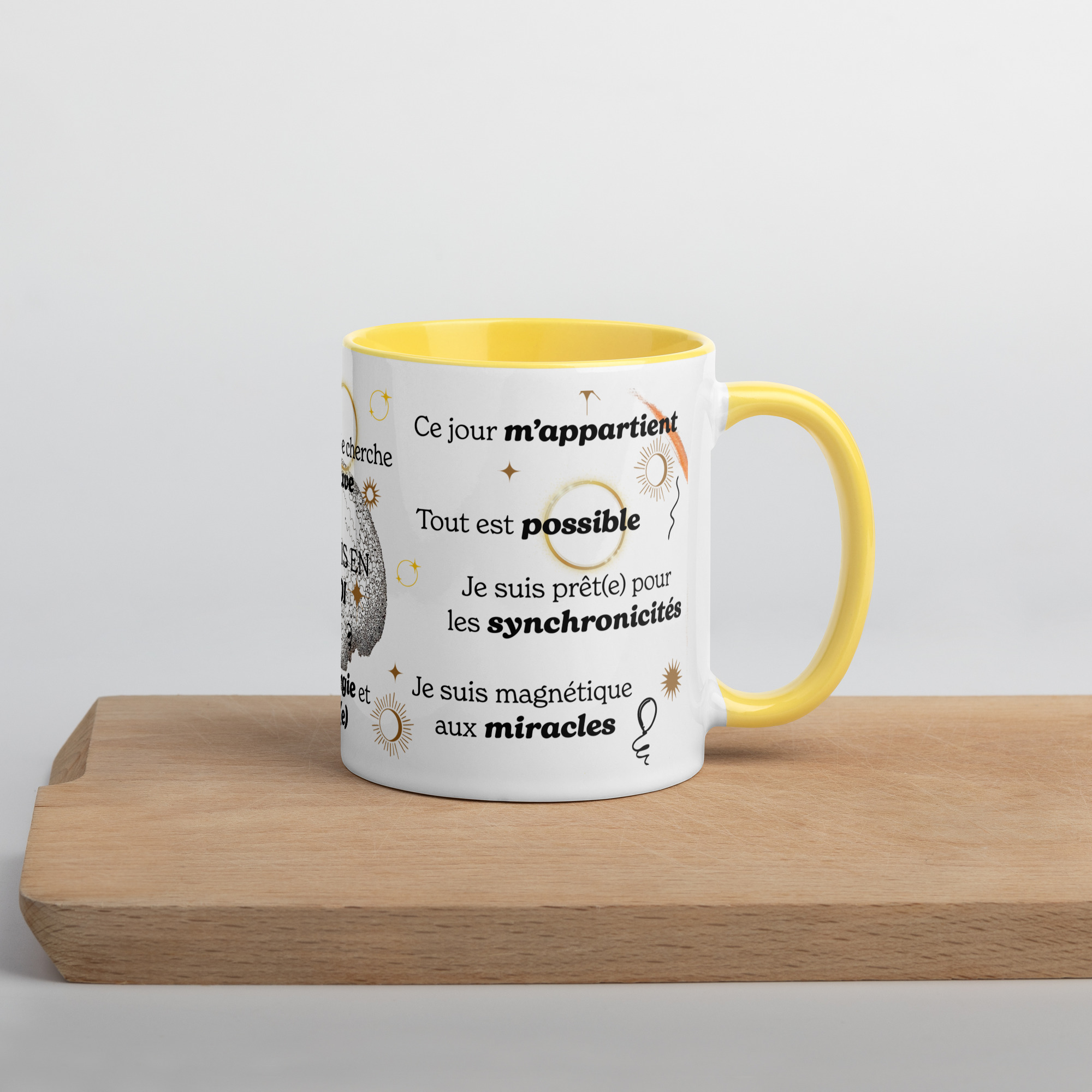 Cette tasse a été pensée comme un outil de bien-être : en la tenant entre vos mains, vous êtes invité(e) à lire, ressentir, et répéter les affirmations inscrites tout autour.